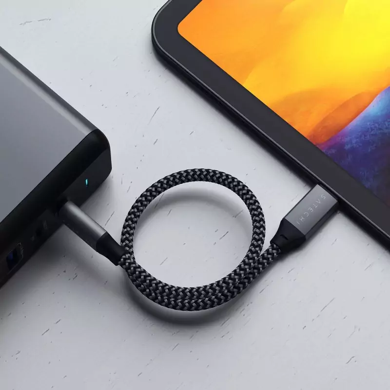Cáp USB-C sang USB-C của Satechi nhanh chóng sạc lại các laptop, máy tính bảng và điện thoại thông minh USB-C, lên đến 100W, để thiết bị của bạn luôn có đủ mức pin khi cần thiết.