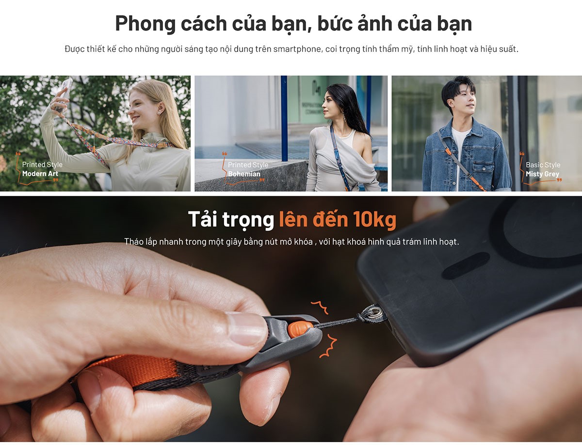 Chống rơi rớt: LinkGo Webbing giúp ngăn rơi rớt điện thoại từ mọi góc độ.