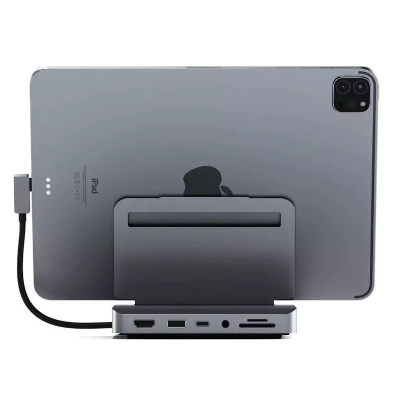 Thiết kế 2-trong-1 của Đế nhôm & Hub của Satechi biến iPad Pro của bạn hoặc thiết bị USB-C bạn đang sử dụng thành một trạm làm việc hoàn chỉnh, cho dù bạn đang ngồi ở bàn làm việc hay di chuyển nhiều nơi.