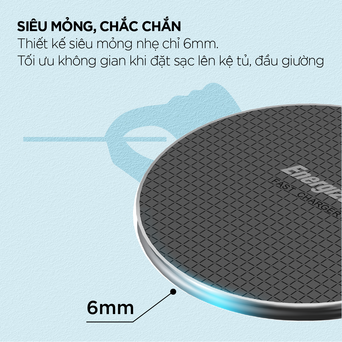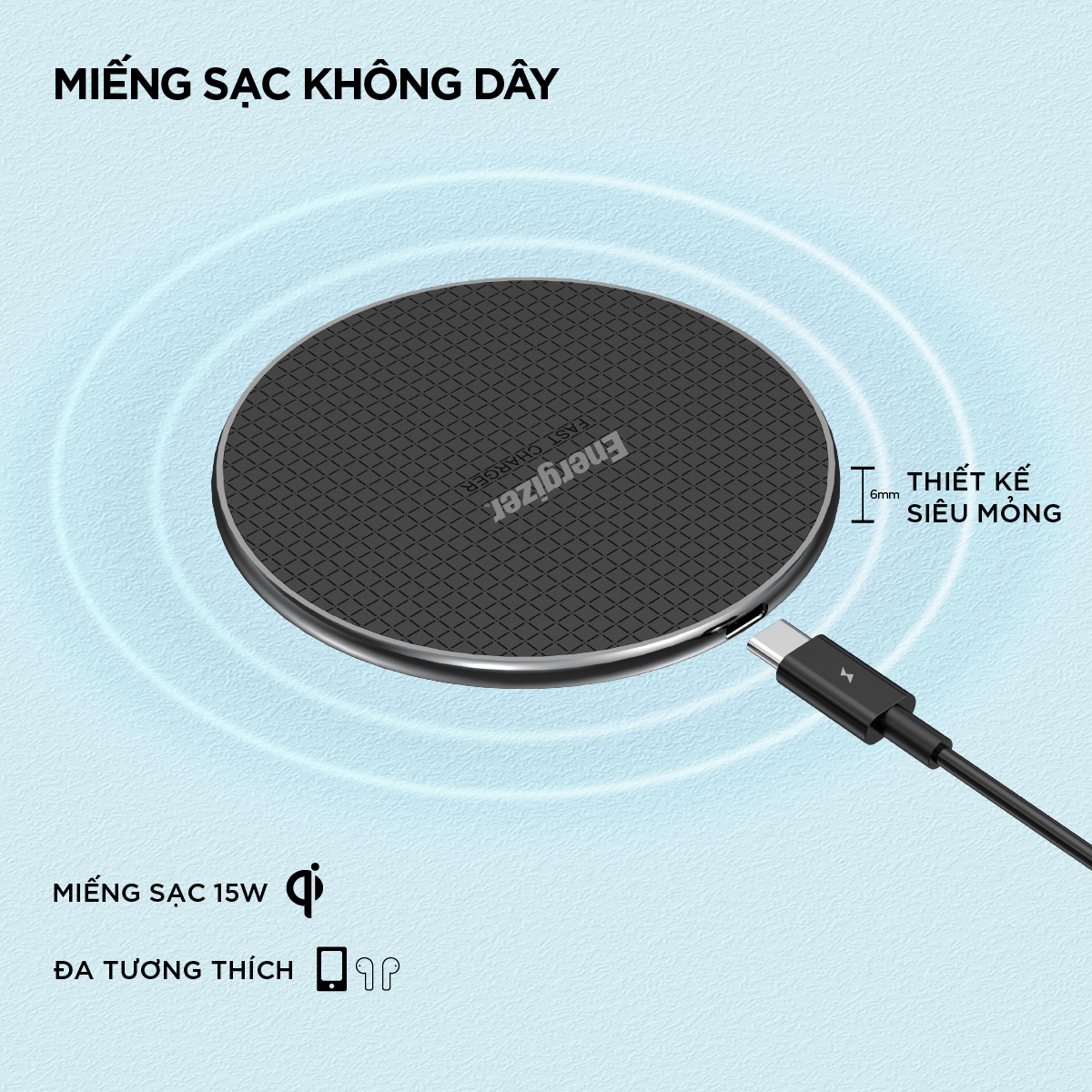 Đế sạc không dây Energizer Qi 15W - Thiết kế siêu mỏng, chạm là sạc