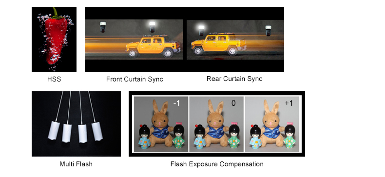 - Tương thích hoàn toàn với hệ thống E-TTL của đèn Canon như khả năng hỗ trợ thông tin EXIF, High Speed Sync (HSS), bù trừ sáng...