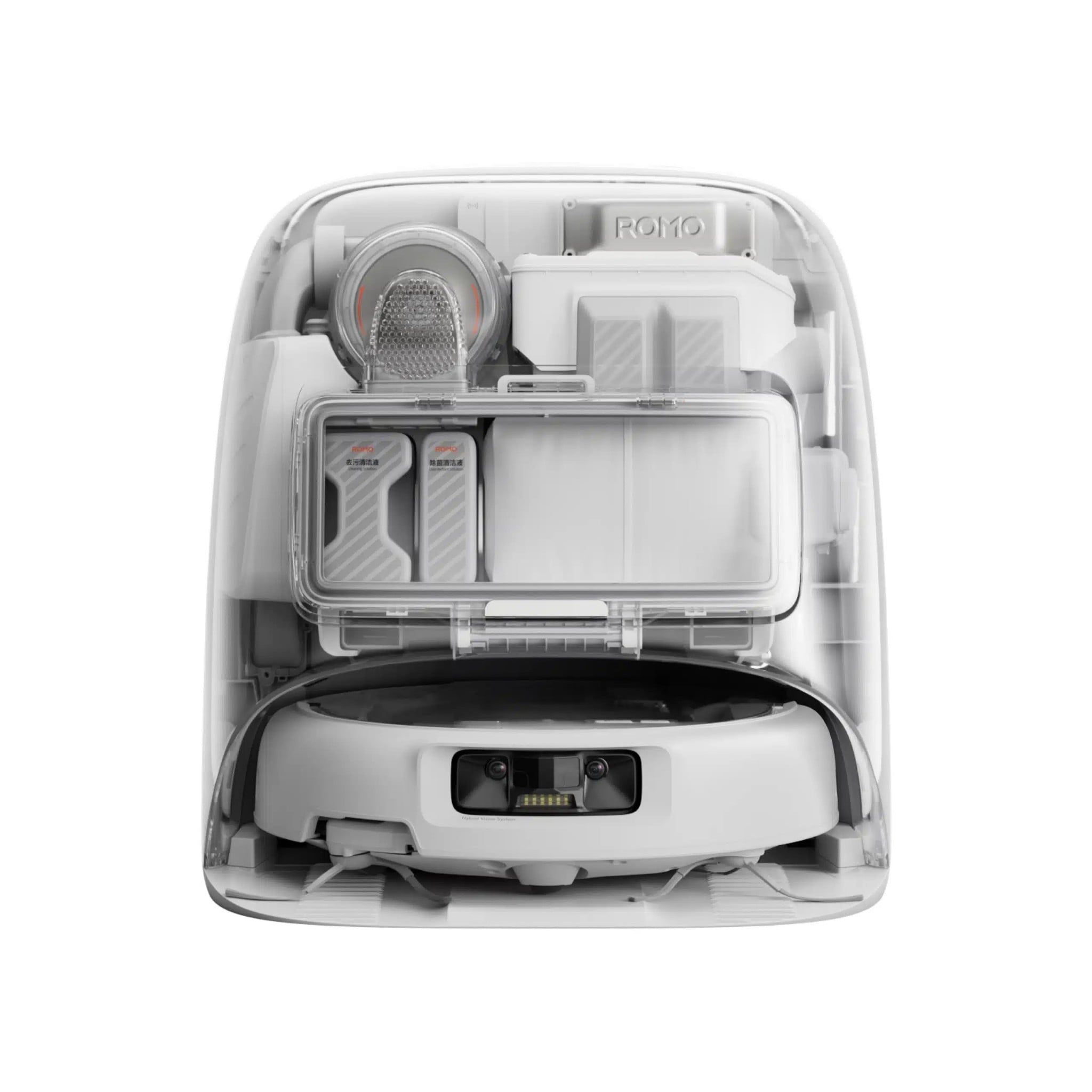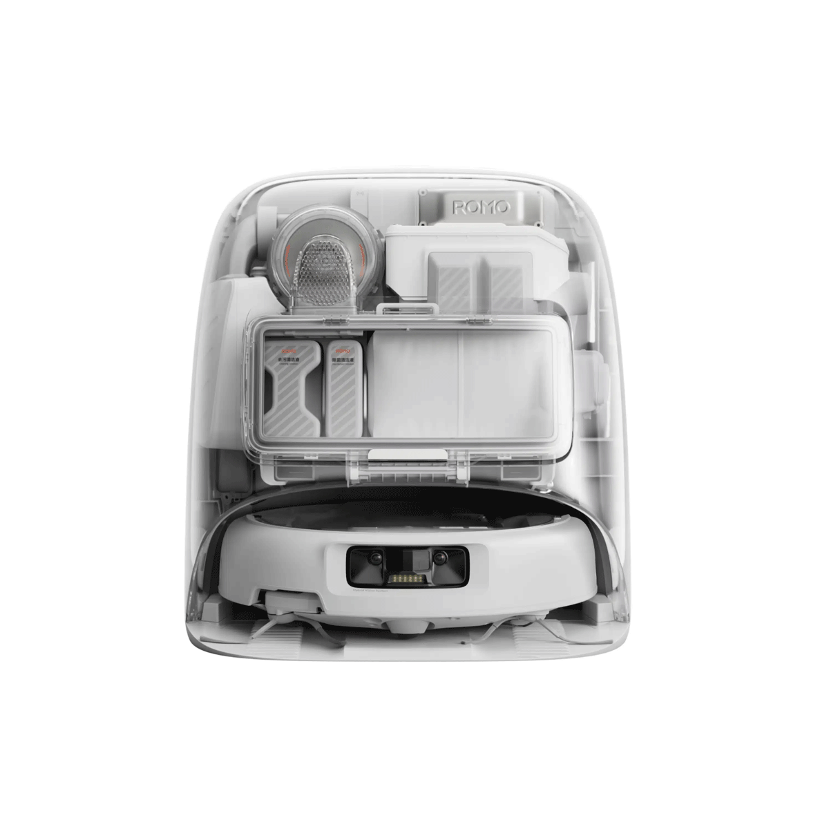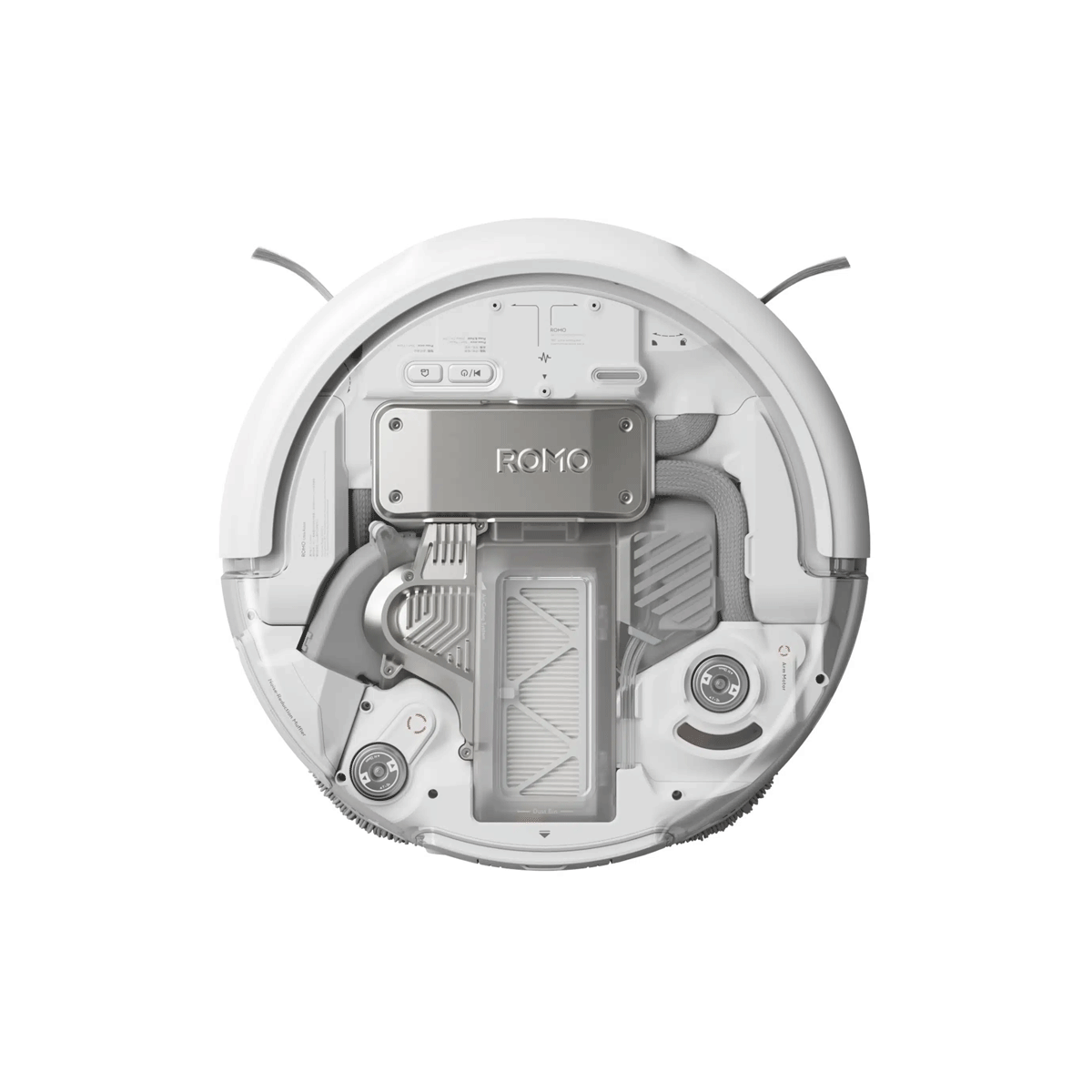 Là phiên bản cao cấp và ấn tượng nhất trong ba model, Romo P gây chú ý với phần thân máy trong suốt hoàn toàn, cho phép quan sát trực tiếp toàn bộ cấu trúc bên trong như motor, hệ thống cảm biến và các chi tiết cơ khí tinh vi. Trải nghiệm ngắm nhìn Romo P vận hành mang lại cảm giác như đang quan sát một cỗ máy sống — minh bạch, nhịp nhàng và đầy mê hoặc, điều mà hầu như chưa robot hút bụi nào khác trên thị trường có thể mang lại.