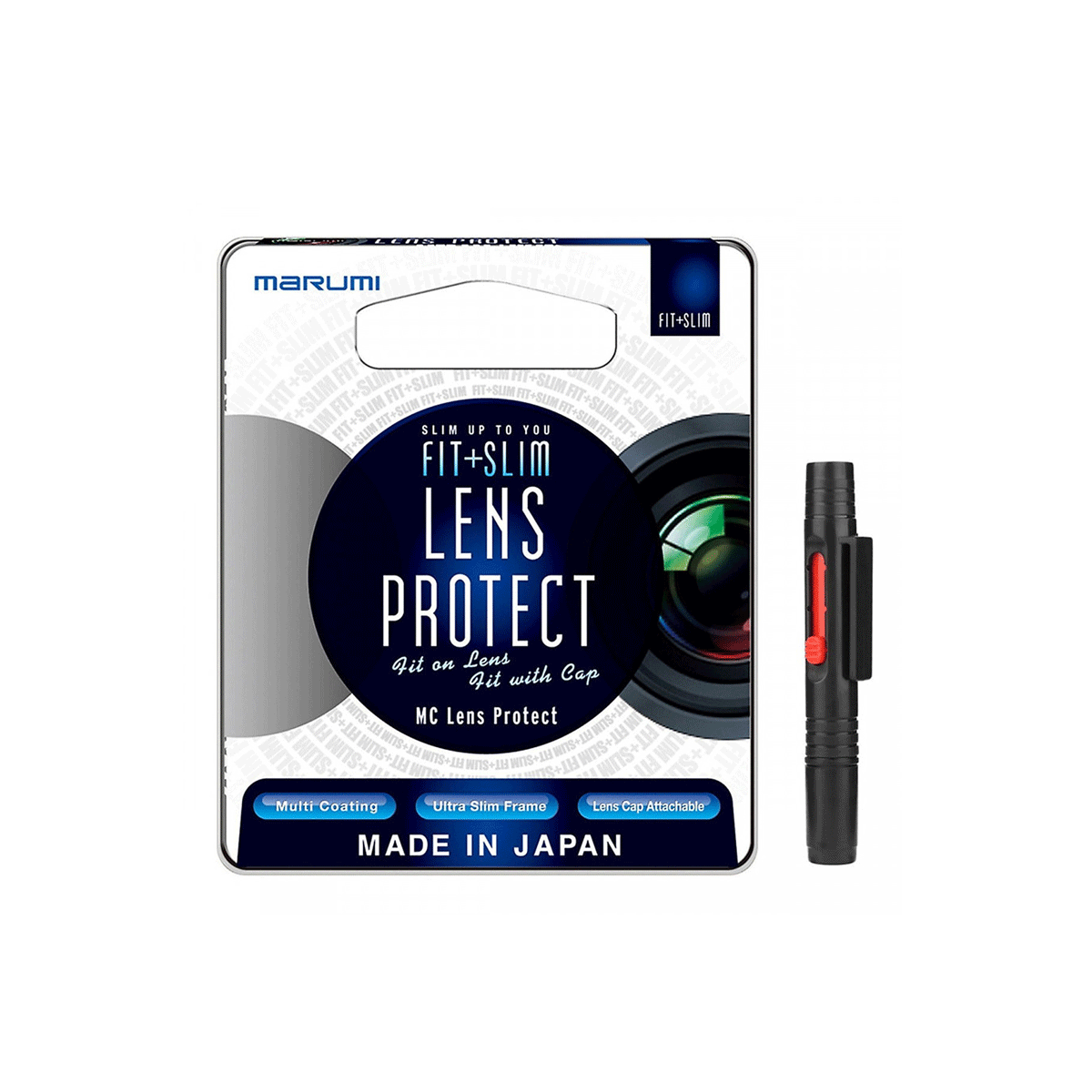 Sản phẩm sxuất xứ tại Nhật Bản. Cũng như các loại kính lọc khác của Marumi, dòng FIT + SLIM mới cho phép đính kèm thêm kính lọc quang học nhờ phương pháp lắp đặt áp suất cao. Tất cả các kính lọc FIT + SLIM đều được thiết kế rãnh xoắn phía trước để dễ dàng gắn thêm một kính lọc khác hoặc nắp ống kính.