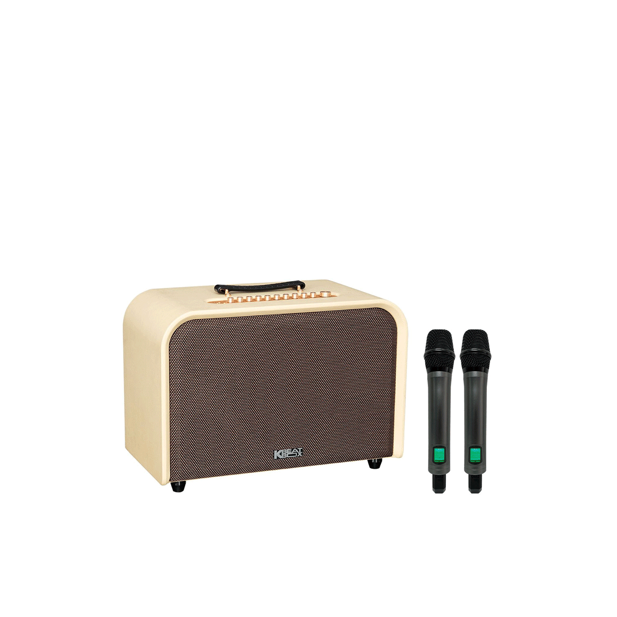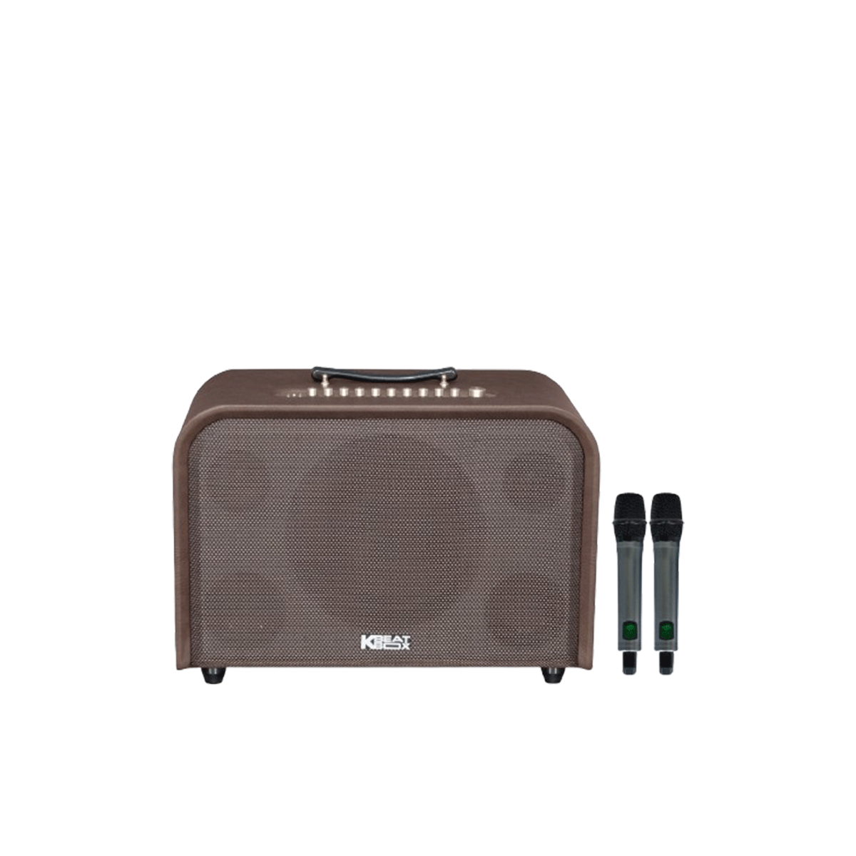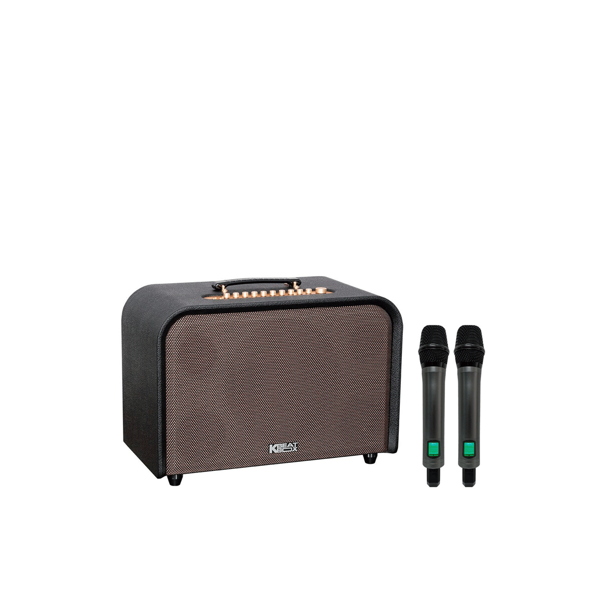 Micro không dây UHF cao cấp: Loa đi kèm 2 Micro không dây UHF vỏ nhôm, có độ nhạy cao, sóng khỏe và bắt âm ổn định. Micro nhẹ hơi, giúp người hát dễ dàng lên nốt cao.