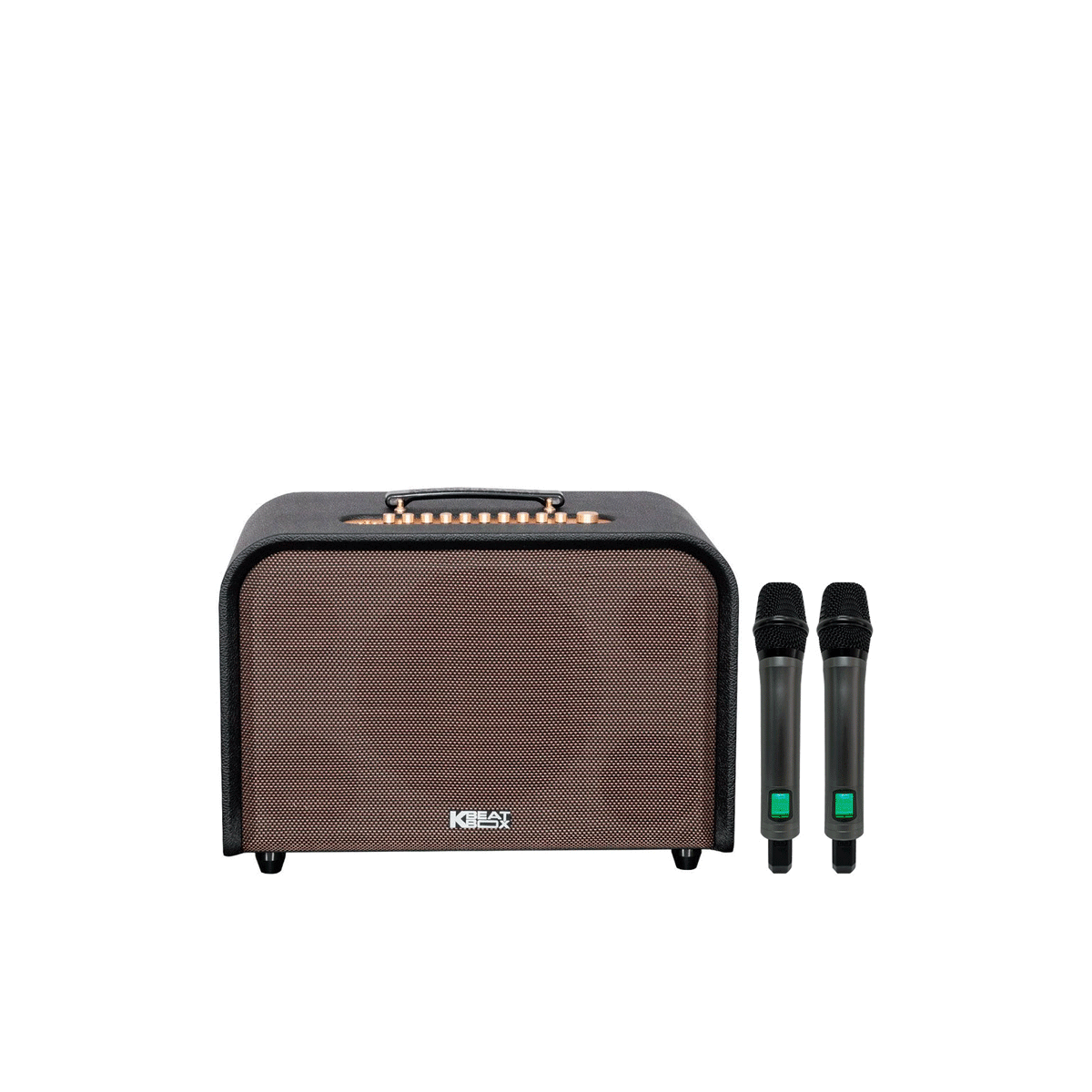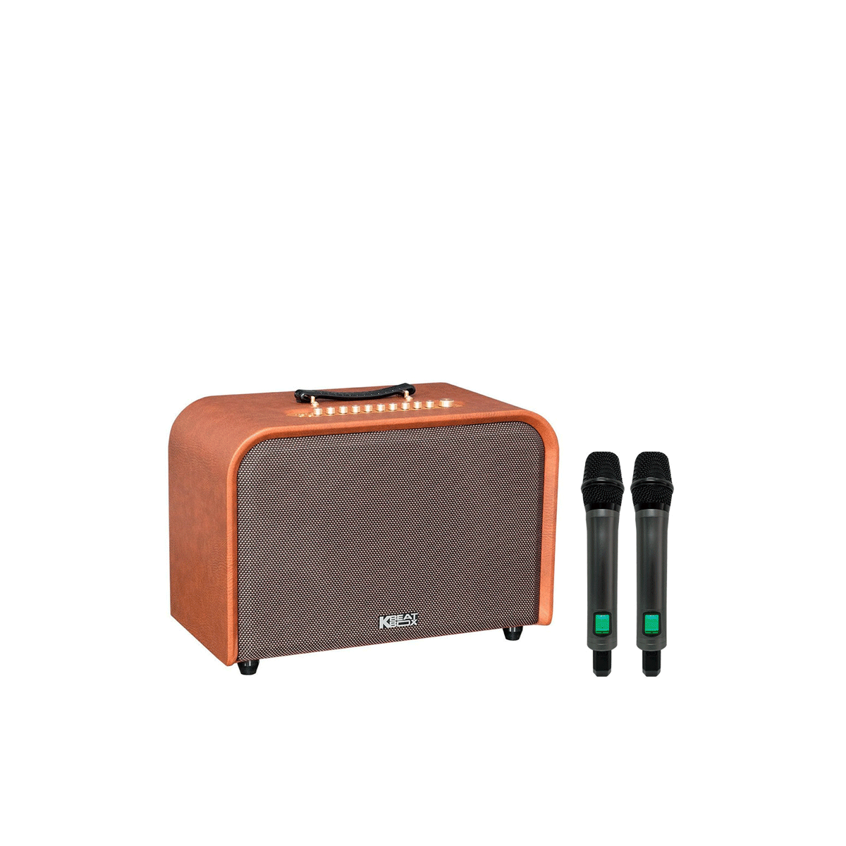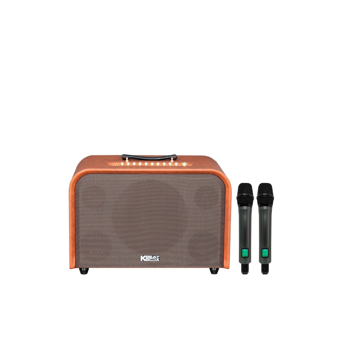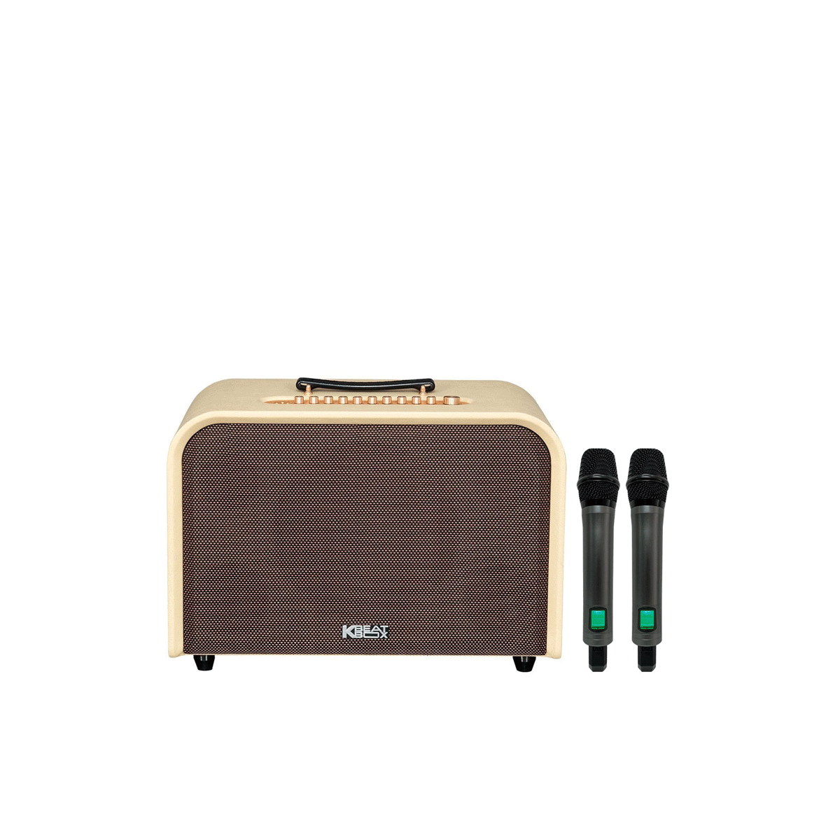 Micro không dây UHF cao cấp: Loa đi kèm 2 Micro không dây UHF vỏ nhôm, có độ nhạy cao, sóng khỏe và bắt âm ổn định. Micro nhẹ hơi, giúp người hát dễ dàng lên nốt cao.