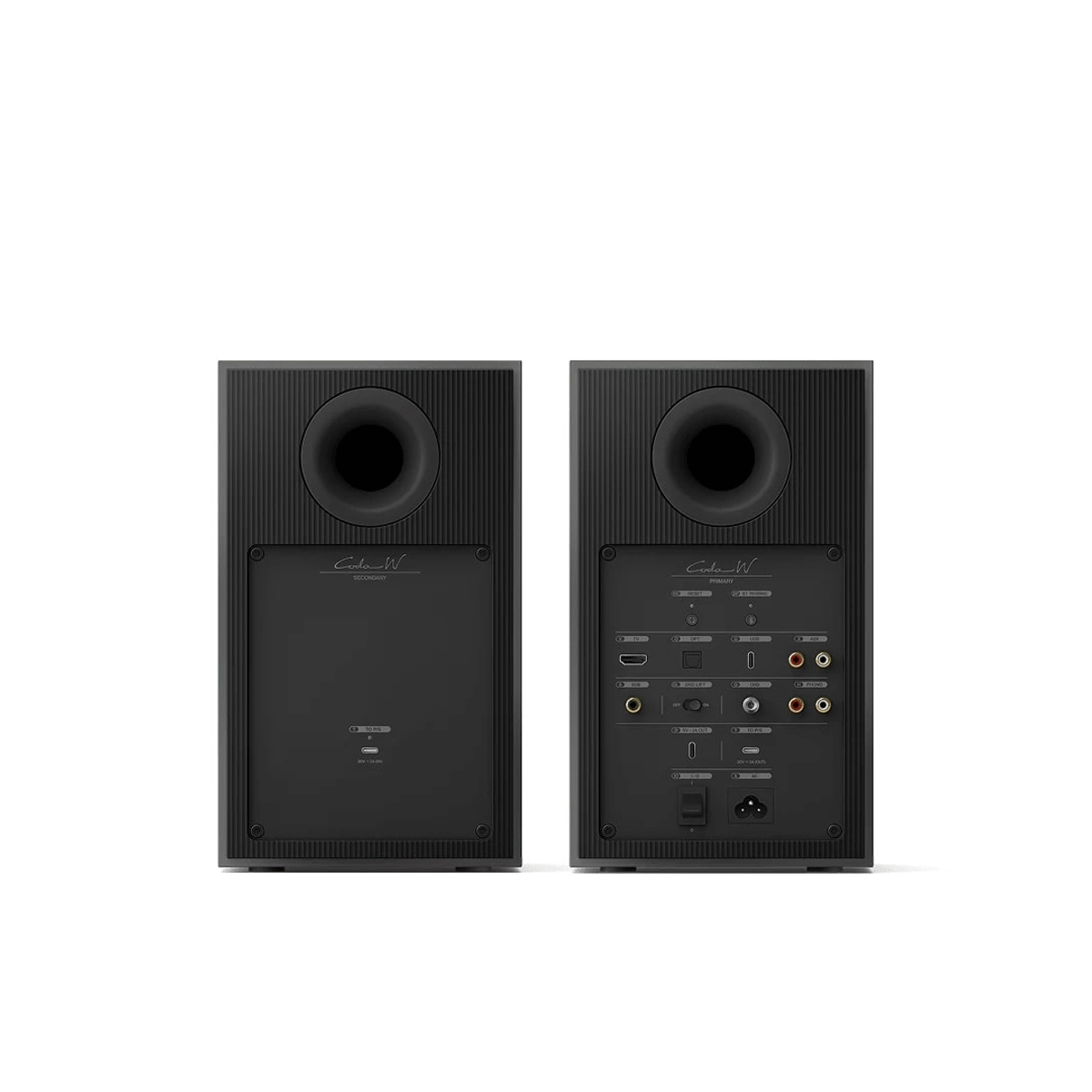 Nếu bạn là người yêu thích âm thanh analog, Coda W hỗ trợ kết nối trực tiếp với mâm đĩa than thông qua ngõ RCA. Đặc biệt: KEF đã trang bị sẵn mạch phono preamp tích hợp, giúp trải nghiệm trở nên đơn giản và tinh gọn hơn bao giờ hết. Ngoài ra, cổng HDMI ARC cho phép đồng bộ âm thanh từ TV, trong khi ngõ ra subwoofer hỗ trợ gắn thêm loa siêu trầm như KEF KC62 để mở rộng dải tần số thấp.