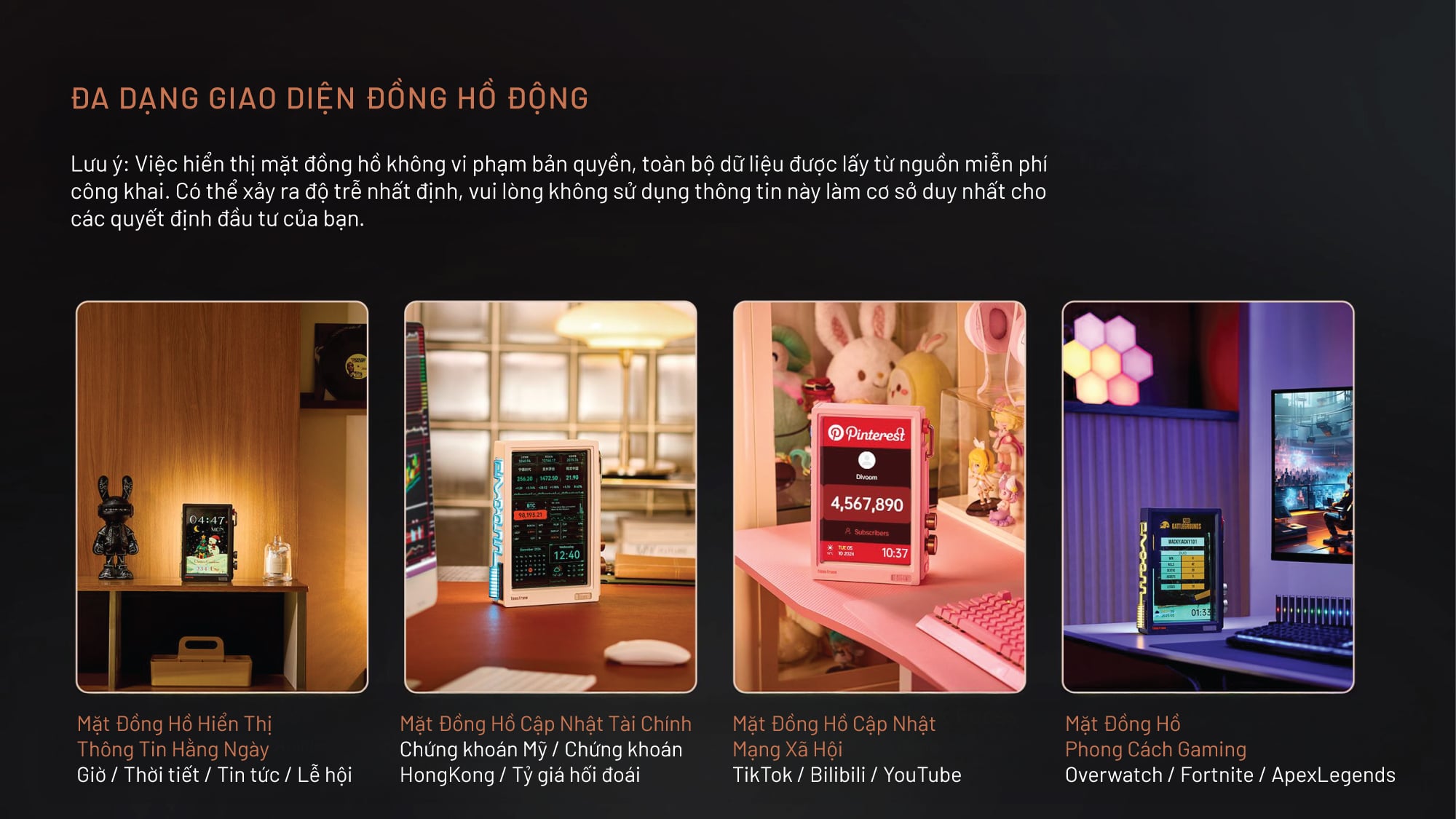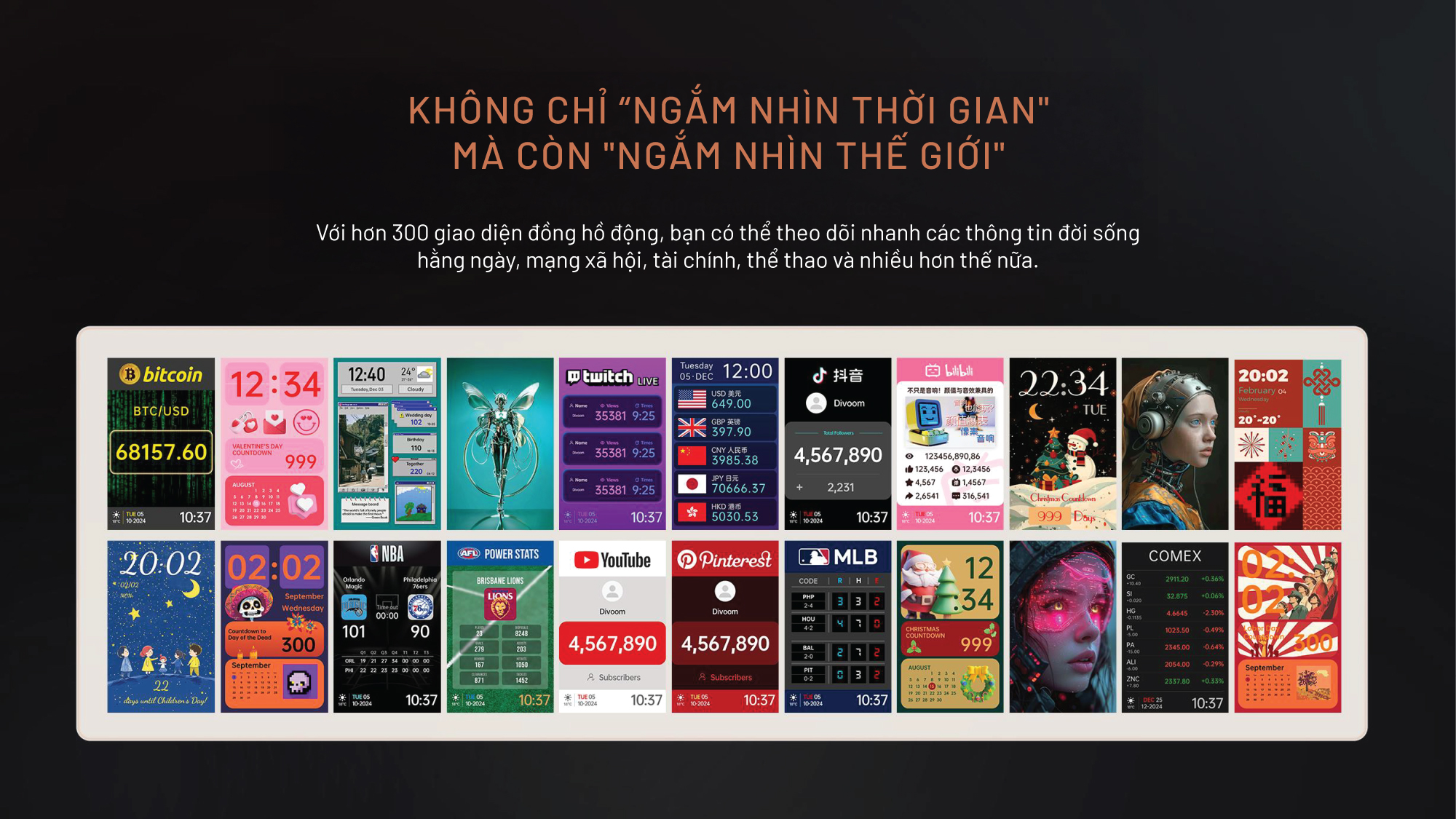 Hiển thị đa dạng: đồng đồ, tài chính, mạng xã hội,... và nhiều hơn thế nữa