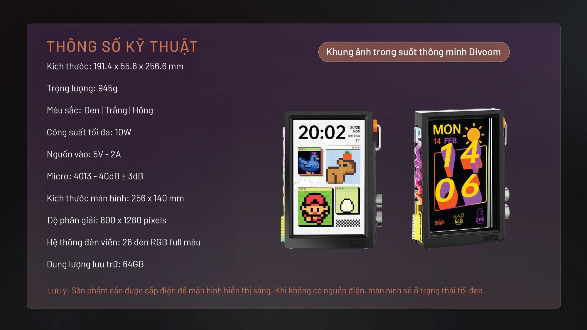 DIVOOM TIMES FRAME - KHUNG ẢNH KỸ THUẬT SỐ ĐẬM CHẤT PIXEL ART