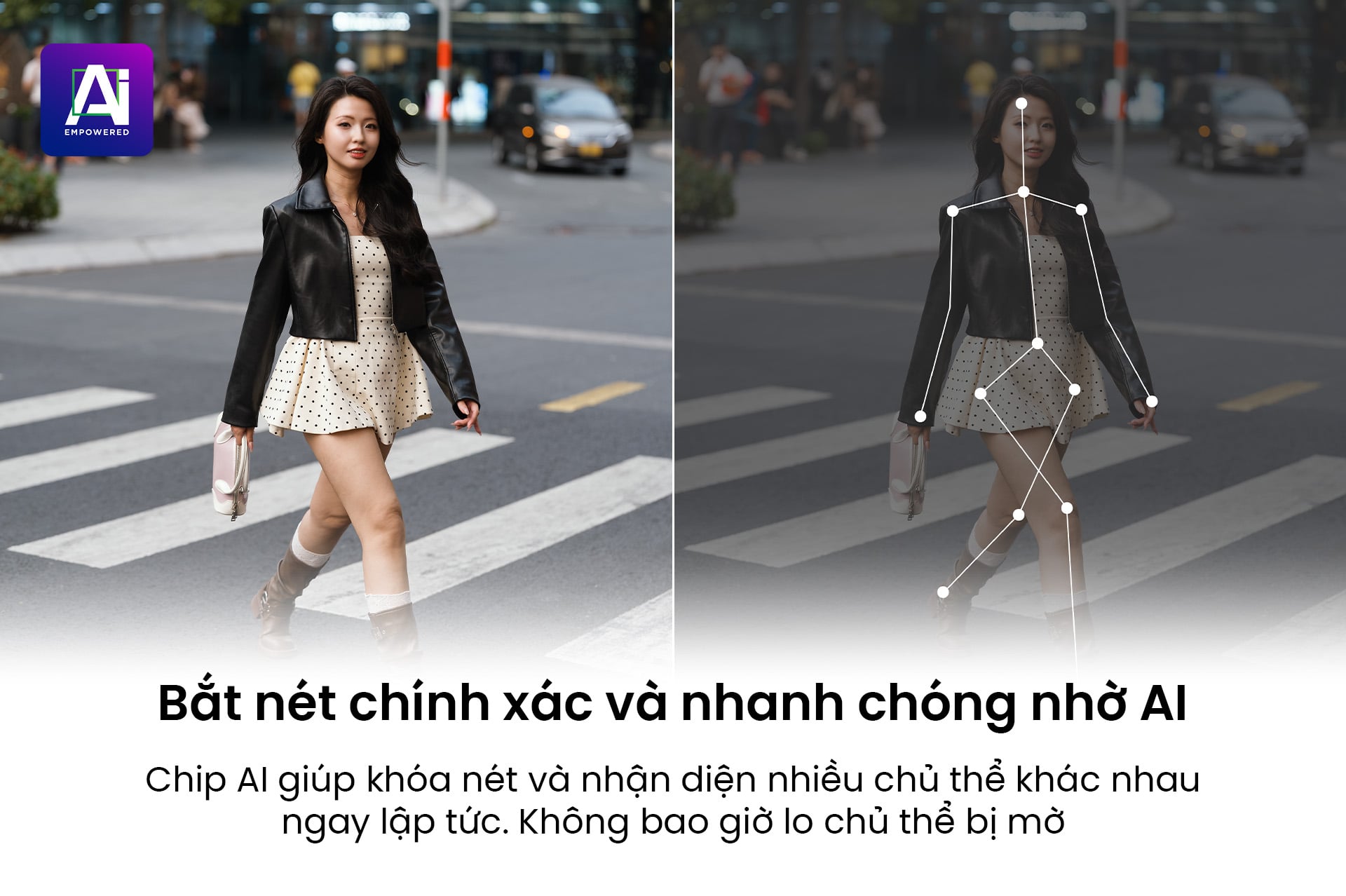 Công nghệ ước lượng dáng điệu con người cho phép máy ảnh nhận diện đầu, thân và mắt của chủ thể ngay cả khi quay lưng hoặc bị che khuất một phần, đảm bảo khả năng bám nét ổn định khi chụp ảnh đời thường, thể thao và quay vlog chuyển động.