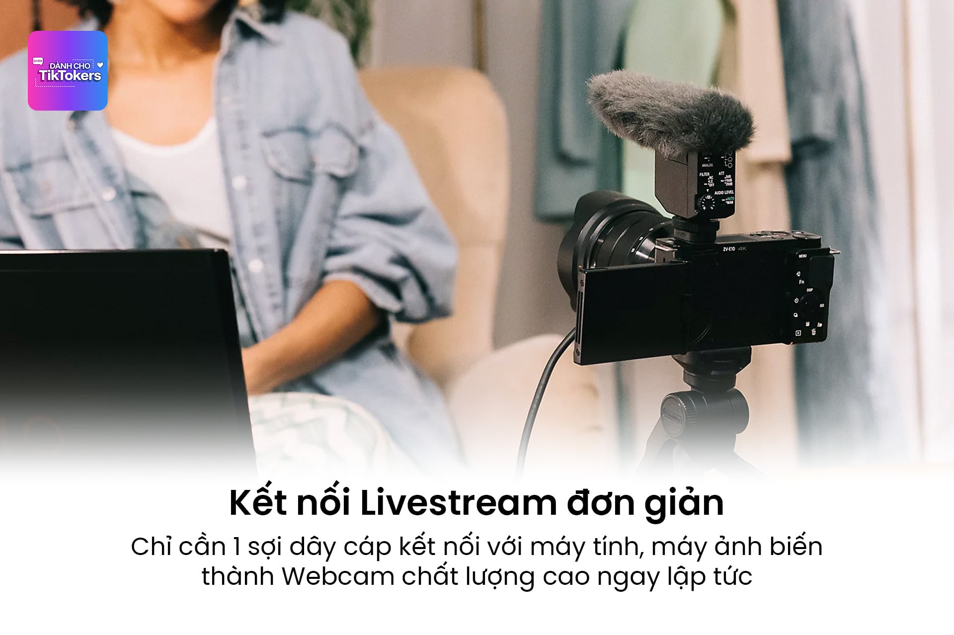 Màn hình có thể lật ra phía trước giúp người dùng dễ dàng tự căn khung khi quay vlog, livestream hoặc ghi hình một mình. Tính năng này giúp tối ưu trải nghiệm cho người làm nội dung cá nhân, bán hàng online và đào tạo trực tuyến.