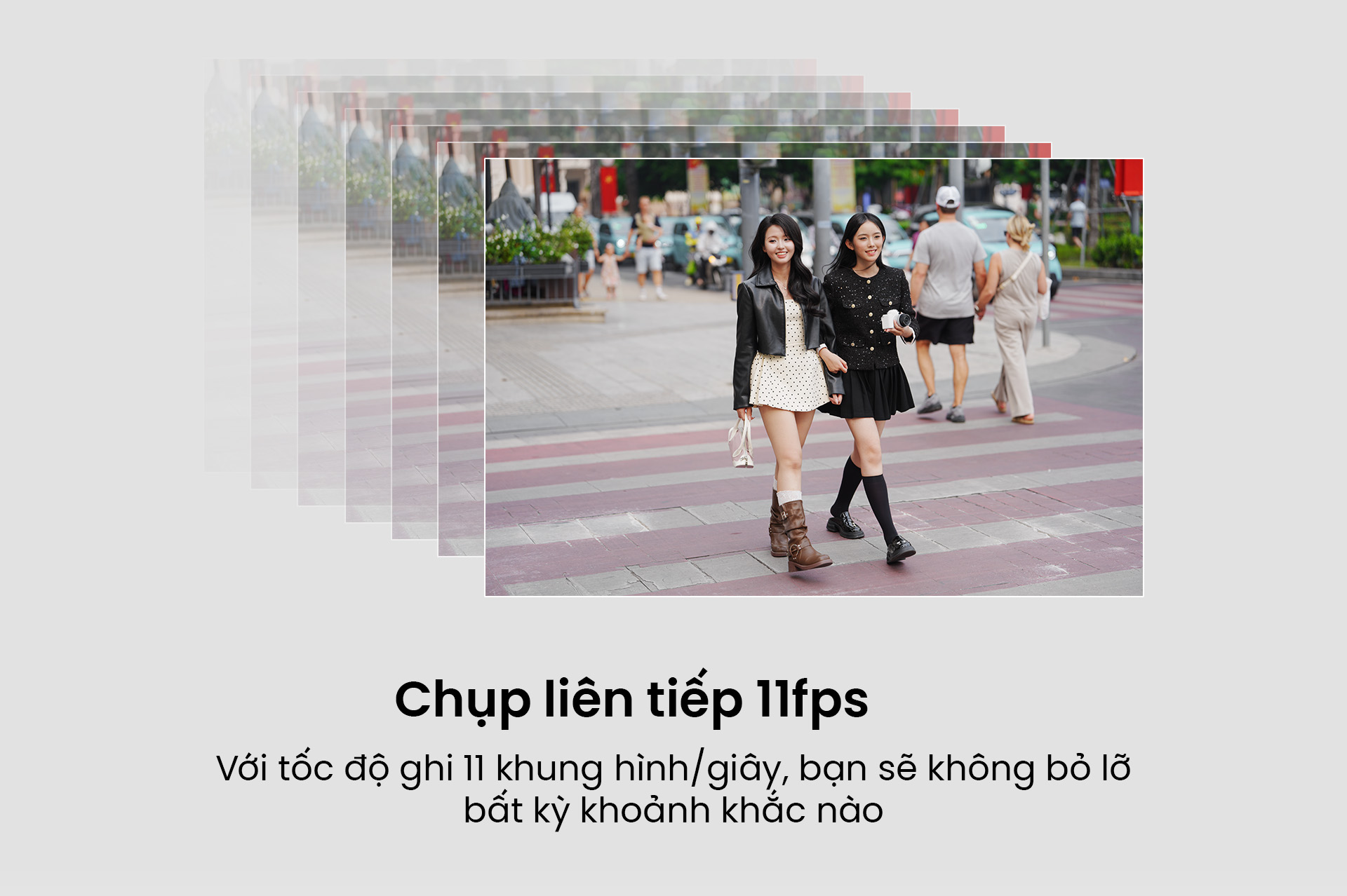 | Tốc độ chụp liên tiếp | Lên đến 11 khung hình/giây |