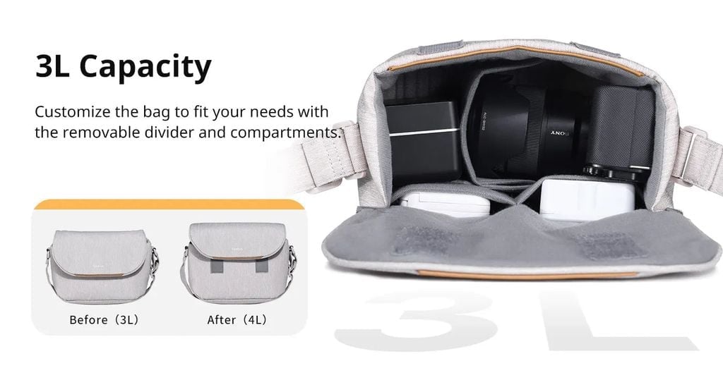 Túi có ngăn đựng DIY với ngăn chia và ngăn có thể tháo rời, cho phép bạn tùy chỉnh bên trong để phù hợp với nhu cầu cụ thể của mình. Băng Velcro giúp bạn dễ dàng và nhanh chóng lấy thiết bị của mình, đồng thời mở rộng dung tích một cách dễ dàng từ 3L lên 4L.